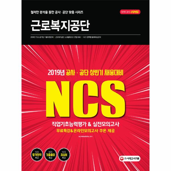 근로복지공단 필기시험 합격을 위해 (주시대고시기획에서는 2019년 상반기 채용을 대비하여 근로복지공단 맞춤형 문제로 구성한 『2019 NCS 근로복지공단 직업기초능력평가 & 실전모의고사』를 출간하였다. 상세한 해설로 혼자서도 학습이 가능하도록 하였으며, 온라인 모의고사를 무료로 응시할 수 있는 쿠폰을 발급하여 근로복지공단 NCS 문제 유형에 대한 연습과 함께 자신의 실력을 최종 점검할 수 있도록 하였다.