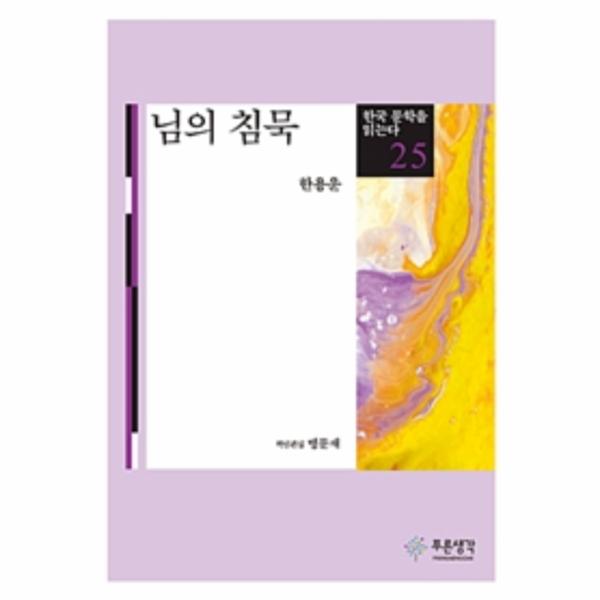 군말 / 님의 침묵 / 이별은 미의 창조 / 알 수 없어요 / 나는 잊고자 / 가지 마셔요 / 고적한 밤 / 나의 길 / 꿈 깨고서 / 예술가 / 이별 / 길이 막혀 / 자유 정조 / 하나가 되어 주셔요 / 나룻배와 행인 / 차라리 / 나의 노래 / 당신이 아니더면 / 잠 없는 꿈 / 생명 / 사랑의 측량 / 진주 / 슬픔의 삼매 / 의심하지 마셔요 / 당신은 / 행복 / 착인 / 밤은 고요하고 / 비밀 / 사랑의 존재 / 꿈과 근심 / 포도주 / 비방 / ‘?’ / 님의 손길 / 해당화 / 당신을 보았습니다 / 비 / 복종 / 참아 주셔요 / 어느 것이 참이냐 / 정천 한회(情天 恨海 / 첫 ‘키스’ / 선사(禪師의 설법 / 그를 보내며 / 금강산 / 님의 얼굴 / 심은 버들 / 낙원은 가시덤불에서 / 참말인가요 / 꽃이 먼저 알아 / 찬송 / 논개의 애인이 되어서 그의 묘에 / 후회 / 사랑하는 까닭 / 당신의 편지 / 거짓 이별 / 꿈이라면 / 달을 보며 / 인과율 / 잠꼬대 / 계월향에게 / 만족 / 반비례 / 눈물 / 어디라도 / 떠날 때의 님의 얼굴 / 최초의 님 / 두견새 / 나의 꿈 / 우는 때 / 타고르의 시(GARDENISTO를 읽고 / 수의 비밀 / 사랑의 불 / ‘사랑’을 사랑하여요 / 버리지 아니하면 / 당신 가신 때 / 요술 / 당신의 마음 / 여름밤이 길어요 / 명상 / 칠석 / 생의 예술 / 꽃싸움 / 거문고 탈 때 / 오셔요 / 쾌락 / 고대 / 사랑의 끝판 / 독자에게