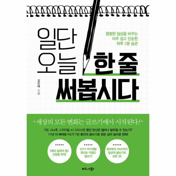 삶에 변화를 주고 싶을 때, 흔히 독서나 운동, 영어 공부 등 새로운 무언가를 하겠다는 다짐을 하고 나름대로 열심히 실천해보려고 애쓰지만 인생은 쉽게 변하지 않는다. 그런데 여기 평범한 하루를 180도 달라지게 만드는, 아주 쉽고 단순하면서도 강력한 변화의 힘을 가진 마법이 있다. 바로 ‘글쓰기’다.