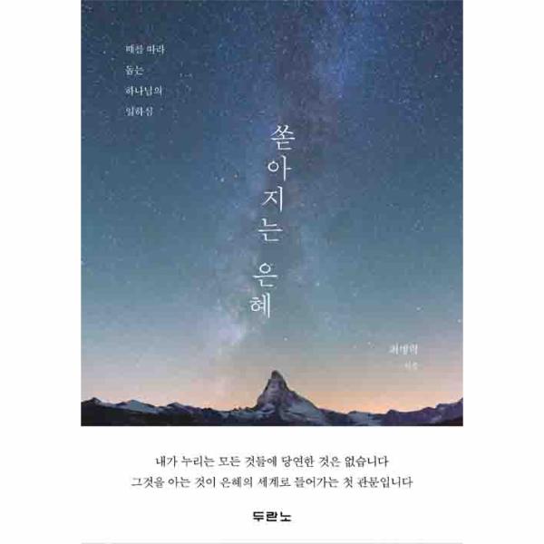 이 책이 그리스도인에게 보내는 하나님의 위로의 편지가 되기를 바라고, 시마다 때마다 쏟아지는 은혜를 주신 하나님께 드리는 감사의 고백이 되기를 원한다는 저자의 고백대로 은혜를 묵상하고, 나누고, 은혜로 삶을 보려는 이들에게 따뜻한 묵상집이 될 것이다.