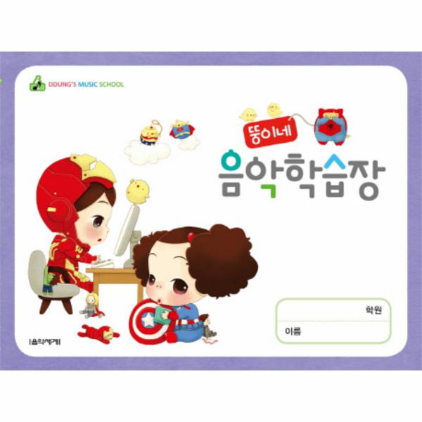 귀여운 캐릭터 ‘뚱이’와 어린이들을 위한 큰 오선이 함께 그려져 있는 음악학습장입니다.
