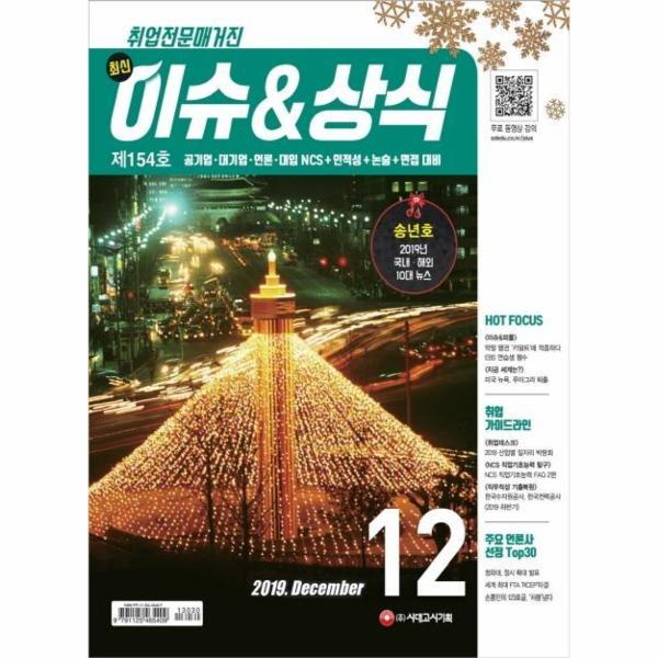 ㆍ<최신 이슈&상식>은 최신 시사상식, 찬반토론, 취업 필기시험 및 면접 준비, 대입 논술 및 구술면접 대비, 시사용어ㆍ인물 소개, NCS 직업기초능력 탐구, 자기소개서 작성 요령, 면접 스피치, 시사실전영어, 공모전ㆍ대외활동 정보, 직무 소개까지 취업준비생에게 필요한 모든 콘텐츠를 망라했습니다. 그뿐만 아니라 시사상식 퀴즈, 인적성 및 NCS 문제, 공기업ㆍ대기업ㆍ언론사 상식 기출문제, 한국사능력검정 시험까지 접할 수 있어 상식의 스펙트럼을 더욱 넓혀주는 상식 전문 월간지입니다.