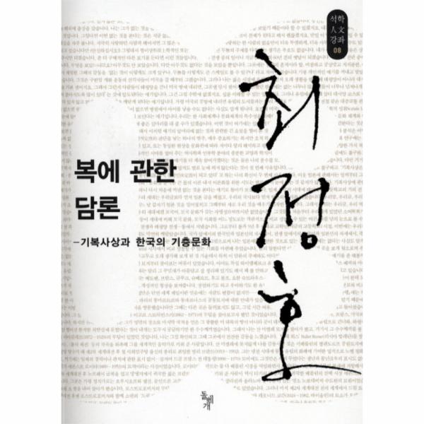 한국인은 넉넉한 사람이나 가난한 사람, 많이 배운 사람이나 덜 배운 사람을 가릴 것 없이 예나 지금이나 복을 빌며 살아왔고 살고 있다. 나 자신과 내 가족을 위해, 그리고 내 가까운 친지들을 위해서 끊임없이 복을 비는 것이다. 그 복의 내용이란 여러 다른 풀이와 다른 이름들이 주어지고 있으나 전통적으로 수(壽·부(富·귀(貴·다남(多男의 네 눈이 알맹이가 되고 있다. 한국인의 ‘알몸의 삶’에 기본적인 동기를 부여하고 있는 이러한 ‘복을 비는 마음’, 곧 ‘기복사상’은 한국인의 삶에 의해서, 그리고 한국인의 삶을 위해서 형성되는 한국 문화 전반에도 깊고 폭넓게 영향을 미치는 요인이다. 이 책에서는 우리의 이러한 전통적인 기복사상을 한국 사회·문화의 맥락 속에서 분석해 보고, 이를 비교문화적·비판적 시각에서 성찰해 보고자 한다.