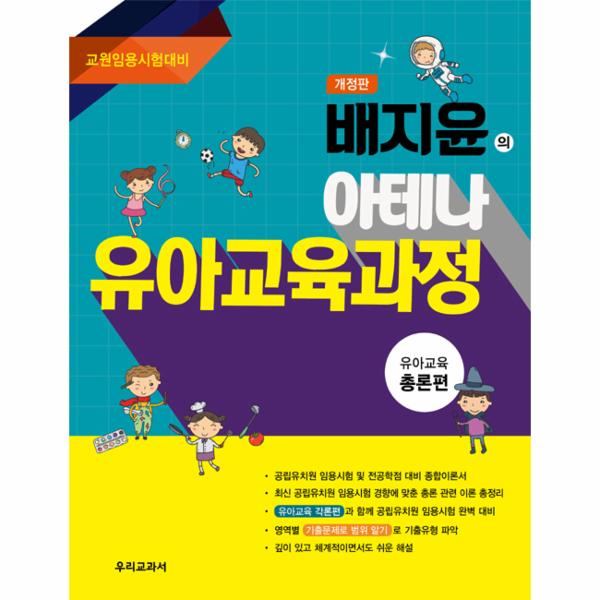 이 책은 기본 “배지윤의 아테나 유아교육과정 총론편”의 최신 개정판입니다. 유아교육 전공자들과 공립유치원 교사의 꿈을 키우는 수많은 수험생들을 위해 만든 교원 임용시험 대비서로서 한층 더 업그레이드했습니다. 유아교육 각론편, 기출문제집, 그리고 워크북과 함께 유아교육 전공자들이 전공 내용을 확인할 때, 그리고 임용시험을 준비하는 수험생들이 한정된 기간 동안 최신 임용시험의 전 영역을 확인하고 효율적으로 시험을 준비하는 데 좋은 지침이 되어 줄 것입니다.
