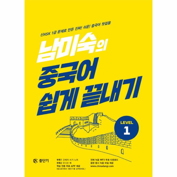 첫걸음 책을 끝내고 나면 대체 어느 정도 수준의 중국어를 할 수 있는지 궁금해 하시는 분들이 의외로 많더라구요. 이런 분들께 자신 있게 말씀드릴 수 있습니다. 이 첫걸음 책을 끝내고 책 뒤에 붙어 있는 신HSK 1급 모의고사를 진짜 시험처럼 정해진 시간 내에 풀어서 180점이 넘으면 당신의 중국어 실력은 신HSK 1급입니다! 신HSK 1급은 간단한 중국어 단어와 문장으로 기초적인 일상 회화를 할 수 있는 수준입니다.