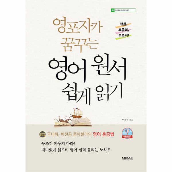 이 책은 어학연수, 해외 유학, 해외 체류 경험 없이도 영어는 잘할 수 있고, 영어 원서도 읽을 수 있다는 것을 함께 나누고자 한다. 저자는 아이를 키우고 직장에 다니며 모국어책과 영어책을 읽으면서 자신감을 가지게 되었고, 독서에서 얻은 감동으로 행복한 삶을 살아가고 있음을 책을 통해 전달하고 있다.