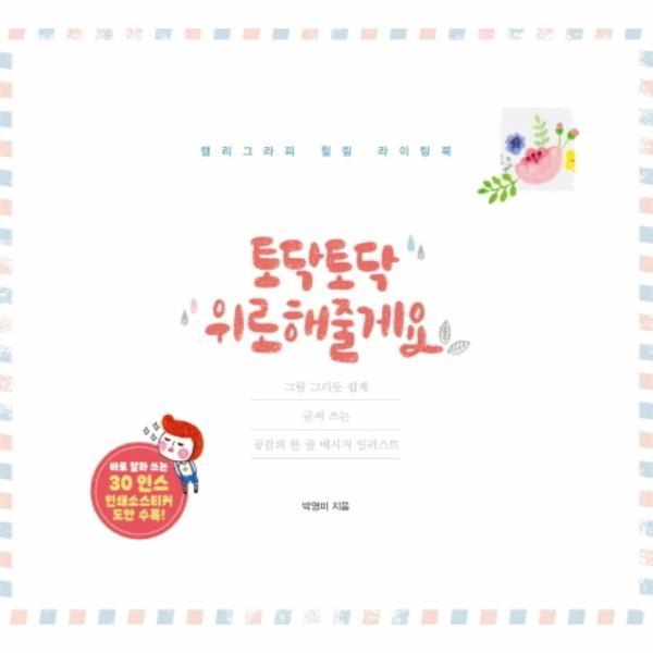 캘리그라피 힐링 라이팅북 《토닥토닥 위로해줄게요》는 캘리그라피와 일러스트 메시지를 접목한 책이다. 누군가에게 또는 나 자신에게 위로와 힘을 줄 수 있는 짧은 메시지를 쓸 수 있는 ‘스티커형 메시지’다. 긴 글보다 짧은 글로 바로 따라 쓸 수 있다. 색연필이나 사인펜, 연필 등 주변의 친숙한 도구로 쓸 수 있는 것도 가장 큰 특징이다.