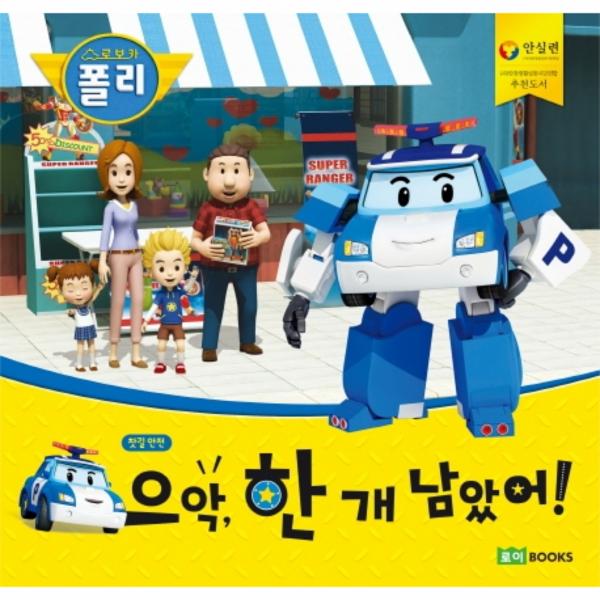 <으악, 한 개 남았어!>는 ‘찻길 안전’에 대한 이야기로, 어린이 교통사고 1순위인 보행자 사고를 예방하고자 펴냈어요. 로보카폴리 캐릭터들이 재미있는 이야기에 등장하여, 찻길 안전 상식을 어린이의 눈높이에 딱 맞춰 알려 주기 때문에 아이들이 기억하기 쉽지요. 또한 횡단보도를 건널 때의 안전 수칙이나 차가 다니는 골목길에서 주의할 점 등 꼼꼼한 부모 가이드가 실려 있어서 더욱 알차요.