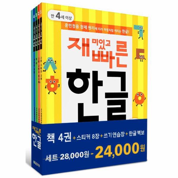 ‘ㅣ’에 획을 더하면 ‘ㅏ’, 또 하나 더하면 ‘ㅑ’, ‘ㄱ’에 획을 더하면 ‘ㅋ’, ‘ㄴ’에 획을 더하면 ‘ㄷ’. 우리 아이가 만 4세를 지났다면 ‘재미있고 빠른 한글’로 시작하세요. 쉽고도 신기한 원리 그대로 배우니 재미있고, 하루 4쪽, 3개월이면 뚝딱 끝낼 수 있으니 빠른 한글입니다. 우리 아이에게 스스로 읽고 쓰는 힘을 길러 주세요.