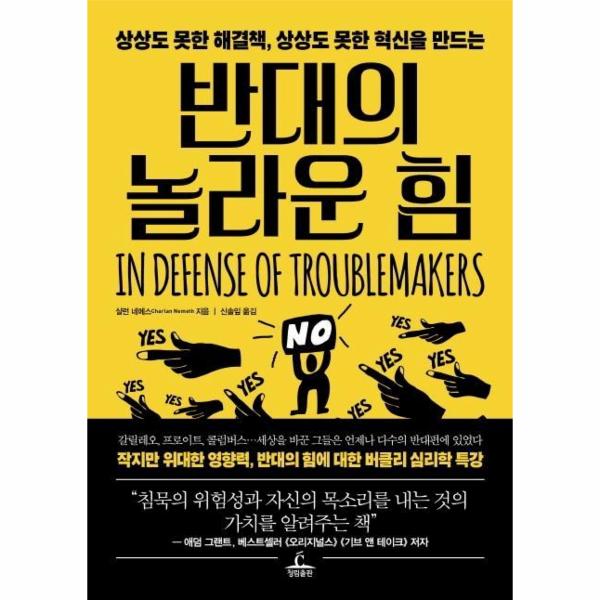 그러나 모두 다 찬성한다고 해서 반드시 옳은 것은 아니다. 다수의 관점에서 세상을 바라보다 보면 진짜 내가 원하는 것을 알 수 없고, 좁은 시각에서 생각하게 되며, 창의적으로 문제를 해결하는 법을 찾지 못하게 된다. 나를 지키고, 시야를 넓혀 문제를 해결하고, 세상을 좀 더 나은 방향으로 이끄는 길은 바로 “아니라고 느낄 때, 아니라고 말할 수 있는 작은 용기”에서 비롯된다.
