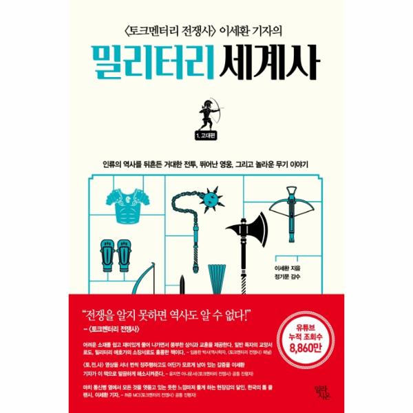 유튜브 누적 조회수 8,860만회 이상을 기록하며 승승장구하고 있는 화제의 프로그램 <토크멘터리 전쟁사> 콘텐츠를 책으로 재구성한 <밀리터리 세계사1>이 출간되었다. <밀리터리 세계사1>은 전쟁과 역사를 맛깔나게 버무려 들려주는 <토.전.사> 콘텐츠를 탄탄하게 깔고, 거기에 밀리터리 전문가인 저자의 필살기인 ‘무기와 방어구’ 이야기를 더해 색다른 독서의 즐거움을 제공하는 전쟁사 책이다. <토.전.사>에서 해학적인 입담으로 ‘샤를 세환’이라는 별명을 얻은 저자의 ‘무기’에 대한 내공과 특유의 입담이 더해져 전쟁 이야기가 마치 옛날이야기처럼 재미있게 읽힌다.
