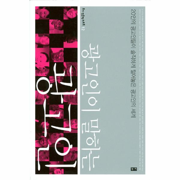 ‘부키 전문직 리포트’ 12번째 권 『광고인이 말하는 광고인』은 전현직 광고인들의 진솔한 경험담을 통해 펼쳐지는 광고의 세계이다. 광고인이라고 부를 수 있는 직종은 일반인이 생각하는 것보다 훨씬 다양하다. 광고기획자, 카피라이터, 어카운트 플래너, 아트 디렉터, 광고 프로듀서, 크리에이티브 디렉터, CF 감독, 글로벌 광고기획자, 온라인 광고기획자, 미디어 플래너, 프로모션 전문가, PR 전문가, 오디오 프로듀서, 콘티라이터…. AE, CW, AP 등 영어로 줄여 부르지 않더라도 무슨 일을 하는 직종인지 짐작하기 쉽지 않다. 하지만 이게 전부가 아니다.