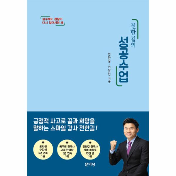 경북대 출신으로 최초로 EBS 강사가 되고, 공무원한국사 강사 중 온라인 수강생 5년 연속 전국 1위의 인기강사이며 한국사 저자인 전한길은 입시전문 학원을 경영한지 불과 2년여 만에 사업에 실패한 뒤 다시 재기에 성공한 뼈아픈 교훈을 바탕으로 『전한길의 성공수업』을 출간했다. 이 책은 30대 약관의 나이로 대구에서 대형 학원을 인수하여 전국 최대의 학원그룹을 꿈꾸며 사업에 매진했지만 수많은 시행착오와 경험부족으로 처절한 실패를 경험한 후 다시 일어나 재기에 성공한 삶의 기록이다. 작가는 ‘내 실패의 경험이 나와 비슷한 나이에 도전하는 사람들이 시행착오를 줄이고 꿈을 이루는 데 도움이 될 수 있도록, 그동안 경험한 모든 일들을 진솔하게 밝힌다.’고 했다. 작가는 반드시 실패할 수밖에 없었던 지난 2년의 과정을 차분히 돌아보며, 그 뼈저린 실패와 패배기를 한 올 한 올 엮어 이 책을 펴냈다.