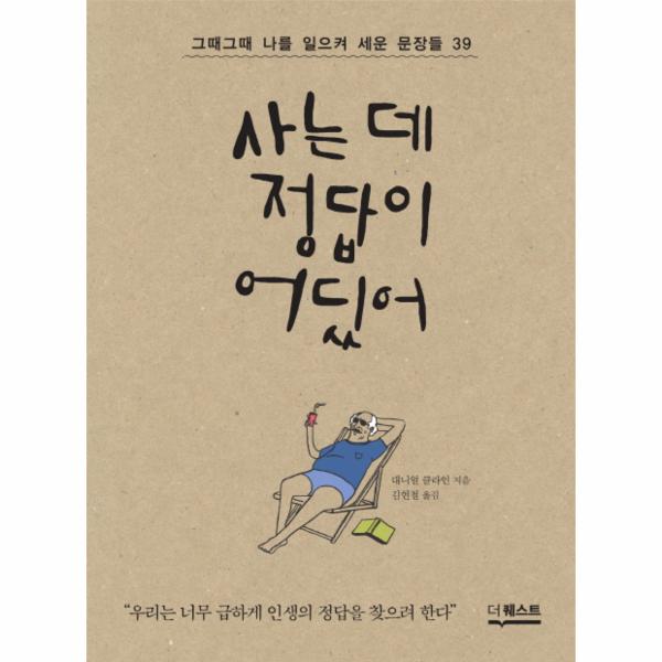 《사는 데 정답이 어딨어》는 대니얼 클라인이 젊은 시절 낡은 노트를 가득 채운 철학 명언을 80살 인생 경험으로 새롭게 읽은 책이다. 하버드대학교에서 철학을 전공하던 시절, 클라인은 어떻게 해야 최선의 삶을 살 수 있을지를 고민하며 그 힌트가 될 만한 글을 찾을 때마다 공책에 전부 적어넣었다. 에피쿠로스, 파스칼, 니체, 사르트르, 흄, 비트겐슈타인, 카뮈, 베케트 등 철학자와 작가들이 남긴 간결하면서도 유려한 인생 명언들은 클라인에게 오랫동안 적절한 해답을 주었다. 30대 중반이 돼서 그는 명언집 작성을 그만두었는데, 신학자 라인홀트 니부어가 말한 “인생의 의미는 찾았다 싶으면 또다시 바뀐다”를 적고나니 모두가 순진하고 덧없게 느껴졌기 때문이다. 클라인은 니부어의 명언 아래에 “진작 좀 알려주지 그랬어요!”라는 짧은 코멘트를 마지막으로 공책을 닫았다.