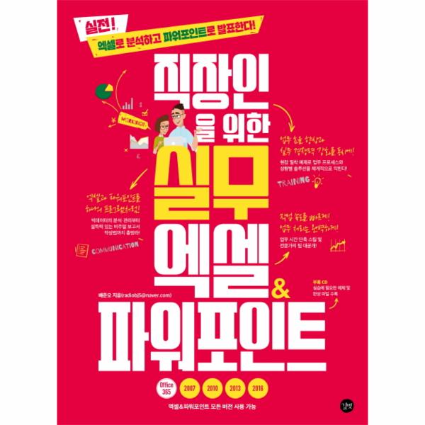 - Office 365, 엑셀과 파워포인트 2007부터 2016 버전까지 모든 버전에서 사용 가능한 실무 예제로, 업무를 빠르게 처리할 수 있는 필수 팁만 쏙쏙 뽑아 알려줍니다.