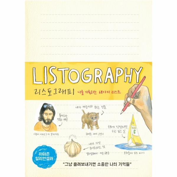 우리나라 독자들에게 낯선 ‘리스토그래피(listography’라는 단어는 이 책을 기획하고 만든 리사 놀라가 ‘리스트(list’와 ‘자서전(autobiography’를 합쳐 만든 말이다. 긴 글을 써야 하는 부담감 대신 리스트 쓰기라는 간단한 방법으로 누구나 쉽게 자서전 한 권을 만들 수 있도록 구성되어 있다. “사람들이 나에 대해 모르는 것” “여행한 나라들” “살면서 이것만큼은 참 잘했다 싶은 일” “꼬맹이 때 해본 나쁜 짓” “무대에 서본 경험” 등 인생 전반에 대해 기록할 수 있는 68가지 질문을 제공한다. 자서전은커녕 하루의 기록도 남기기 어려울 정도로 바쁜 사람들과 빈 노트 앞에 서면 뭘 써야 할지 막막한 사람들에게 필요한 책이다.