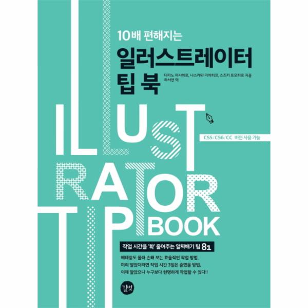 일러스트레이터 최신 버전인 CC가 출시되었지만, 아직까지도 현장에서는 이전 버전을 사용하는 곳이 많습니다. 이런 분들을 위해 이 책은 구 버전에서도 사용할 수 있는 팁들로 구성하였습니다. 간혹 최신 버전에서만 다룰 수 있는 기능들이 있는데요. 각 타이틀 번호 아래에 해당 기능을 사용할 수 있는 버전을 표기해두었으므로 참고해서 보면 좋을 것 같습니다.