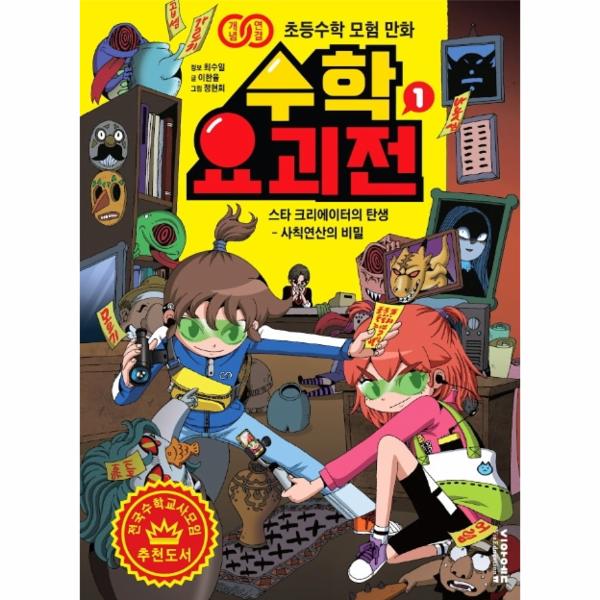 《수학요괴전》 1권 ‘스타 크리에이터의 탄생-사칙연산의 비밀’에서는 수학의 기초가 되는 사칙연산을 개념부터 파헤친다. 뛰어 세기에서 자연스럽게 덧셈으로, 또 곱셈으로 이어지는 개념의 연결을 체험할 수 있다. 또 덜어내기에서 어떻게 뺄셈, 나눗셈으로 개념이 연결되는지 만화를 통해 재미있게 배울 수 있다.