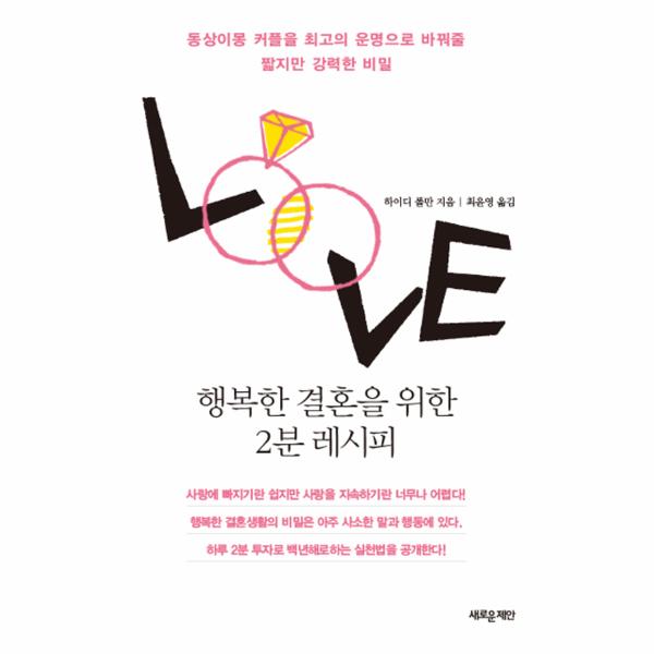 이 책은 결혼생활에서 발생하는 갈등 상황을 부부 스스로 효과적으로 조정하는 손쉬운 방법들을 이야기하고 있다. 아주 단순하지만 효과 큰 방법들이 나와 있다. 저자 하이디 폴만은 부부 커뮤니케이션 전문가이자 아이 넷을 둔 결혼 16년 차 주부로서 수많은 전문서적과 결혼 보고서를 탐독하고 오래도록 행복한 결혼생활을 이어가는 실제 부부들을 인터뷰한 결과 ‘행복한 결혼’의 해법을 찾아냈다. 신혼부부부터 수십 년간 살아온 부부까지, 여전히 알콩달콩 사이좋은 부부뿐만 아니라, 현실적으로 어려움을 겪는 부부들에게도 효과 만점인 팁들을 제시한다. 본문은 어떻게 하면 성실하게 사랑할 수 있는지, 어떻게 하면 작지만 의미 있는 방법으로 배우자를 소중히 여길 수 있는지 등 크게 두 가지 내용으로 구성된다.