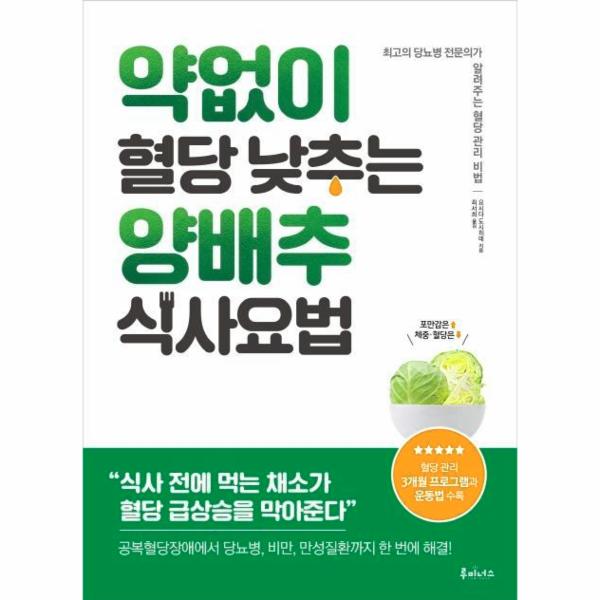 환자들을 진료하면서 계속 생각하고 직접 여러 가지를 시험한 끝에 저자가 고안해낸 것이 ‘식전 양배추 먹기’이다. 일반적으로 열량이 낮고 배가 부른 음식이라고 하면 자연스럽게 떠오르는 게 ‘채소’다. 채소는 비타민과 미네랄은 물론 혈당을 낮추는 식이섬유가 풍부해 건강에도 매우 이롭다. 당근이나 오이, 양상추 등 여러 채소로 실험해본 결과, 생양배추를 먹었을 때 결과가 가장 만족스러웠다. 식사하기 전에 양배추 6 분의 1개를 먹기만 하면 포만감도 얻고, 혈당 급상승도 막을 수 있었다.