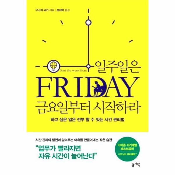 《일주일은 금요일부터 시작하라》는 하고 싶은 일은 많은데 “시간이 없어서”라며 꿈을 포기하는 사람을 위해 ‘시간 부자’가 되는 방법을 담은 책이다. 잠을 줄이거나, 친구를 만나는 시간을 없애라는 ‘뺄셈의 시간법’이 아닌, 똑같은 시간을 밀도 있게 쓰며, 한 가지 일에서 두 가지 가치를 만들어내는 ‘덧셈의 시간법’을 소개한다.