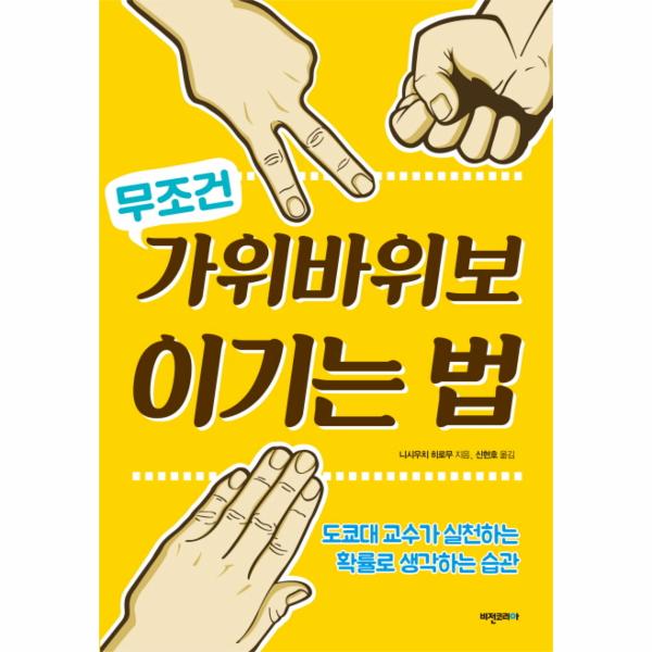 《가위바위보 무조건 이기는 법》은 단순히 ‘확률로 생각하는 것이 선택과 결정에서 더 유리하다’고 말만 하는 처세서가 아니다. 어떤 방법과 단계를 거쳐야 확률적 사고를 자신의 무기로 만들 수 있는지 자세한 방법까지 알려주는 실용서이다. 스테디셀러로 자리 잡은《빅데이터를 지배하는 통계의 힘》 저자이자 《가위바위보 무조건 이기는 법》의 저자, 도쿄대 교수인 니시우치 히로무는 재미있고 다양한 사례를 통해 대학 진학, 취업, 결혼, 이직 등 중요한 결정을 내려야 하는 상황일 때 확률적 사고를 하면 어떤 이익을 얻을 수 있는지 알려준다.