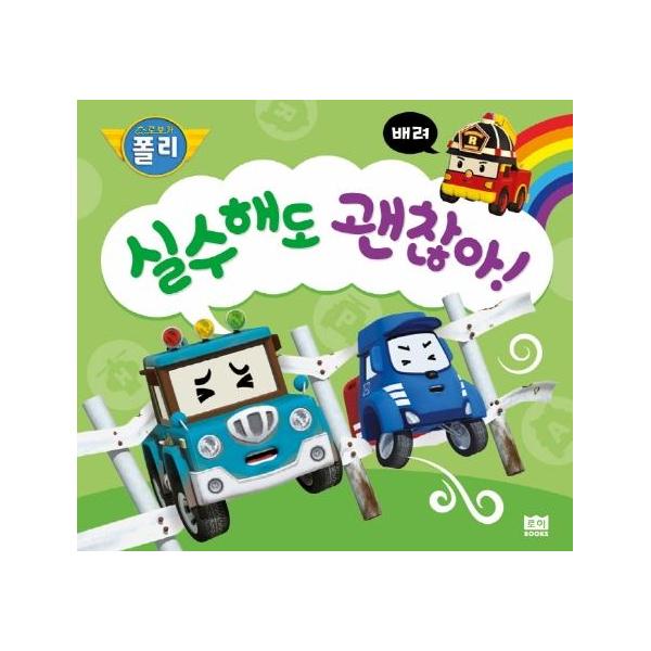 《로보카폴리 인성 그림책》 시리즈는 누리 과정을 바탕으로 아이의 인성 발달에 꼭 필요한 15개의 주제를 쏙쏙 뽑아 만들었어요. 그중 ‘배려’를 주제로 한 <실수해도 괜찮아!>는 감정 이입 능력을 자연스럽게 길러 주고, 부모가 배려를 어떻게 교육해야 하는지 올바른 방향을 알려 주는 책이랍니다.