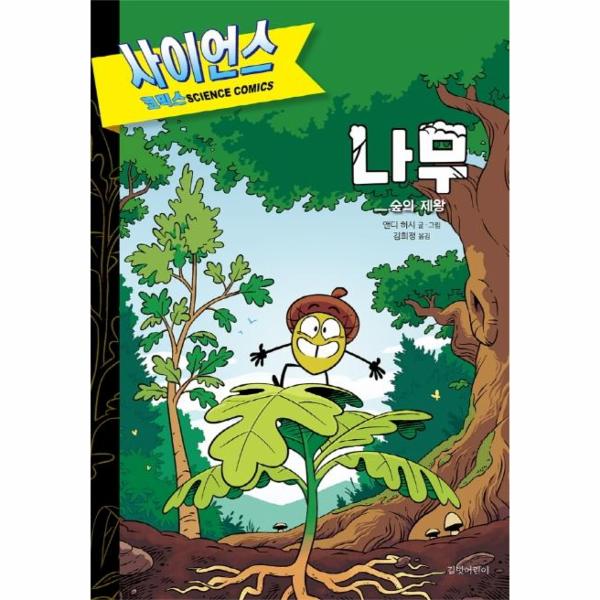 《나무_숲의 제왕》에는 작고 귀여운 도토리가 등장합니다. 호기심 많고 똑똑한 도토리는 하고 싶은 것, 보고 싶은 것이 많습니다. 뿌리를 내리고 떡갈나무가 될 계획은 추호도 없지요. 어느 날 갑자기 나뭇가지에서 떨어진 이 도토리는 개구리, 고사리 이파리, 딱정벌레, 다람쥐, 딱따구리, 균류를 차례로 만나며 지구 생태 시스템의 근간인 식물의 역할과 기능에 대해 하나하나 알게 됩니다. 그 덕분에 무심코 지나쳤던 작은 이파리, 부러진 가지, 늘 보던 운동장의 나무에 얽힌 비밀을ㅜ독자도 비로소 알게 되지요. 지구 곳곳을 누비는 도토리와 숲속 친구들의 놀라운 여정을 따라가다 보면 식물과 나무, 그리고 숲에 대해 우리가 그동안 생각지도 못했던 놀라운 사실들을 만나게 됩니다. 이 책은 작디작은 씨앗이 뿌리를 내리고 떡잎을 피우며 아주 오랜 시간 자라고 번식하여 거대한 생태 시스템을 이루기까지, 그 기나긴 과정을 재미있는 만화로 쉽게 전합니다. 어린이 독자는 물론이고, 엄마 아빠와 교사도 함께 즐길 수 있는 유익한 과학 만화책입니다.