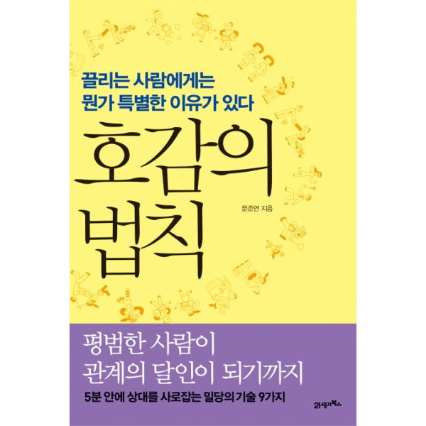 원하는 직장에 취업해 성공적인 직장생활을 하고, 좋아하는 사람을 만나 결혼을 하고, 주위 사람들과 어울려 즐겁게 잘 사는 것. 이것이 보통 사람이 원하는 행복이다. 그런데 언젠가부터 이런 꿈의 문턱을 넘기 위해 엄청난 스펙과 대단한 노력이 필요하게 되었다. 하지만 성공의 열쇠는 생각보다 가까이 있다. 바로 ‘호감’이다. 이 책은 인기가 많은 사람이 어떻게 주변의 호감을 사는지, 그리고 사람들이 왜 그를 좋아하는지를 잘 설명해 준다. 책에서 제시하는 호감의 원리들은 화려한 스펙이 없는 평범한 사람들도 누구나 약간의 관심을 기울이고 노력하면 쉽게 터득하고 실천할 수 있는 것들이다. 책을 쓴 한양대학교 경영학부 문준연 교수는 18년째 마케팅과 소비자 행동을 가르치고 있다. 저자는 마케팅 관점에서 소비자가 기업을 선택하는 행동 패턴을 분석해 그 숨은 원리를 ‘호감’에서 찾았다. 또한 전문적인 마케팅 이론을 현실 사례에 적용하면서 이런 원리가 비단 기업과 소비자의 관계뿐 아니라 사람과 사람 사이에도 적용할 수 있다는 사실을 밝혔다. 평범한 사람이 관계의 달인이 되기까지 호감을 사는 원리와 실천 방법을 모두 담아냈다. 본문 속에는 재치 있는 삽화가 수록되어