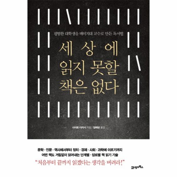 어렵고 귀찮은 책도 쉽게 읽을 수 있는 방법을 알려주는 책. 일본 최고의 교육심리학자이자 한국과 일본에서 최고의 인기 교수로 꼽히는 메이지대 사이토 다카시 교수의 신작 《세상에 읽지 못할 책은 없다》.