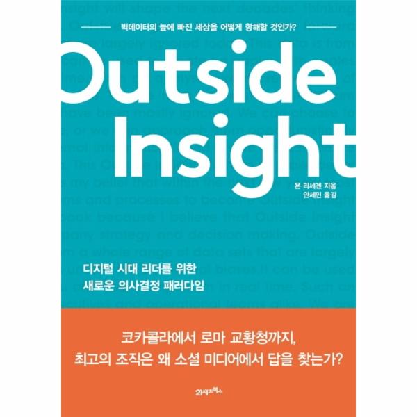 당신의 기업은 어떻게 의사 결정을 내리는가? 그동안 기업들은 재무 지표와 같은 내부 데이터에 크게 의존했다. 그러나 내부 데이터에 근거한 의사 결정은 수동적인 경영 방식이다. 기업의 재무 지표는 과거에 행했던 투자와 여러 결정의 최종 결과이기 때문이다. 현재 기업에 가장 중요한 것은 미래의 먹거리를 확보하기 위한 경쟁 전략이다. 이를 위해서는 외부의 경쟁 역학이 실시간으로 어떻게 변하고 있는가에 대한 통찰력, 즉 아웃사이드 인사이트가 필요하다.