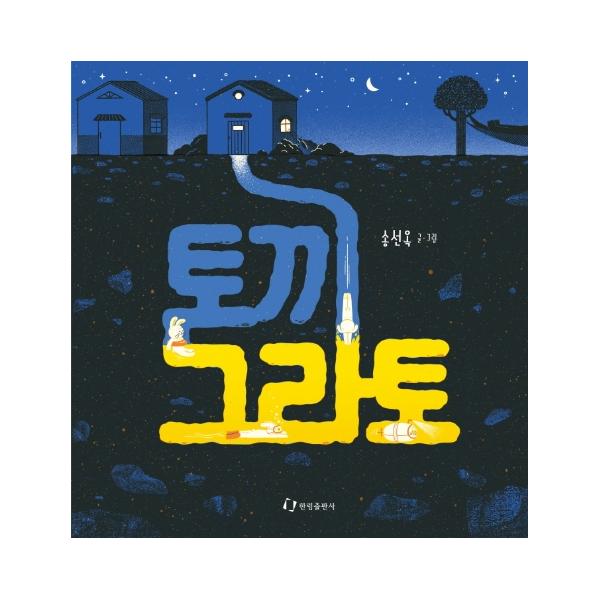 노란 토끼, 파란 어둠, 검은 흙의 색 표현이 보자마자 한눈에 들어온다. 기존의 틀에서 벗어난 독특한 색의 조합이 묘하게 조화를 이루고 있어 더욱 매력적인 송선옥 작가의 『토끼 그라토』는 볼수록 더 자세히 들여다보게 되는 그림책이다. 특히 그라토가 집 안 구석구석 작고 아늑한 공간을 찾아 다양한 자세로 잠을 청하는 장면과 그라토만의 딱 맞는 굴들이 여러 갈래로 이어져 펼쳐진 장면이 눈길을 확 끈다. 토끼 특유의 습성에 작가의 아이디어와 유머를 녹여 개성 있게 표현된 장면들이 그림책 본연의 재미를 담고 있다. 『토끼 그라토』