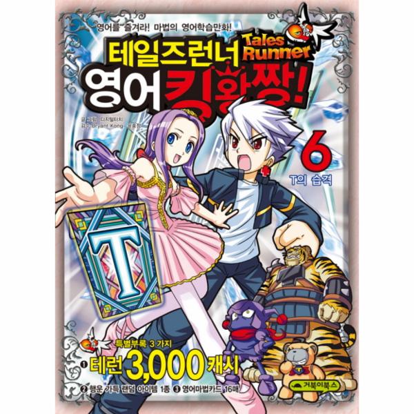 6권에는 새로운 캐릭터인 T 카드의 정령 Tiger와 장난감 Toy 등이 등장해 테일즈런너들과 영어마법대결을 펼치며 독자들의 마음을 사로잡는다. 학습 콘텐츠는 스펠링 T를 중심으로 take, thousand 등 다양한 영단어를 수록했으며, 영어로 일기쓰기, 영어퍼즐 등 복습 코너도 마련해 더욱 효과적인 학습을 유도한다. 특별부록으로는 테일즈런너 3,000캐시와 함께 행운...