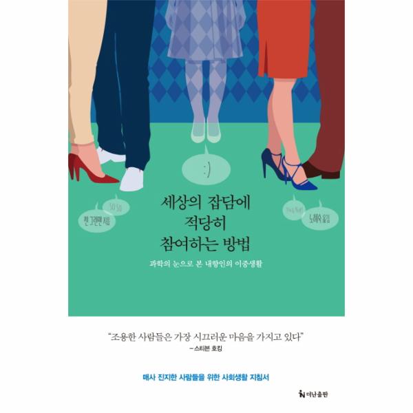 잔과 잔이 부딪히고 말과 웃음이 섞이는 흥겨운 파티의 한가운데서 어딘지 외로운 섬처럼 보이는 사람이 있다. 누군가 그에게 “오늘 기분이 안 좋아요? 무슨 일 있어요?” 하고 묻는다. 당황한 그는 “아니요, 아무 문제 없어요”라고 말하며 어색하게 웃어 보인다. 그러나 사실 그에게는 문제가 좀 있다. 그것은 바로 그가 내향인이라는 것. 말보다는 글이 편하고 사색과 공상을 즐기는 사람이라는 것. 시시콜콜한 잡담, 은근한 과시와 자랑 섞인 말들을 한 귀로 흘려들으면서 마음 한구석에는 ‘집에 가서 넷플릭스로 영화나 보고 싶다’라고 생각하는 부류의 사람이라는 점이 바로 문제라면 문제다.