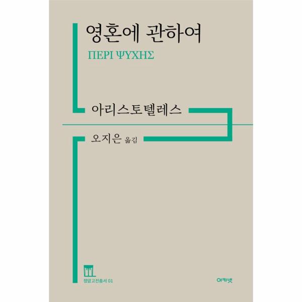 정암학당의 체계적 윤독 시스템을 거쳐 5년 만에 출간된 ‘정암고전총서’의 첫 책. 『영혼에 관하여』는 아리스토텔레스 이론 철학의 최고봉인 『형이상학』과 아리스토텔레스의 저술의 3분의 1에 해당하는 동물/생물 관련 저술들에 다리를 놓는 작업으로 평가받는다. 이 저술에서 아리스토텔레스는 플라톤을 비롯한 고대 철학자들의 연구를 총괄하고 비판적으로 사유하여 영혼을 ‘삶의 원동력’으로 논한다.