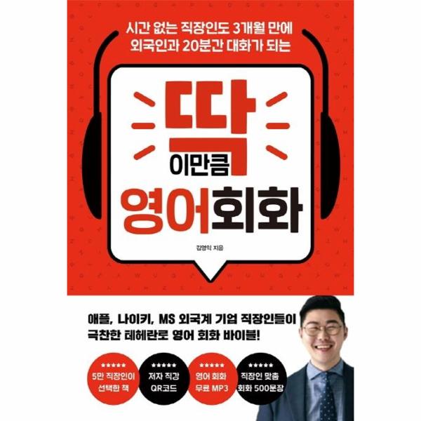 『딱이만큼 영어 회화』의 목표는 간단하다. ‘원어민 같은 영어’를 하는 게 아니라, 그저 ‘말이 통하는 영어’를 하는 것! 당장 영어로 비즈니스를 해야 하는 직장인에게 고급스러운 어휘와 멋스러운 표현 따위는 필요치 않다. 영어로 말하는 것 그