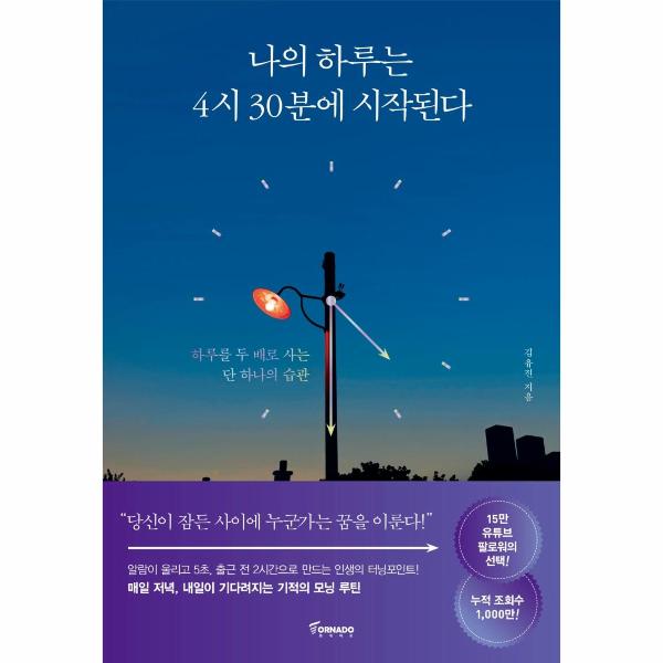 이 책의 저자 김유진 변호사(유튜브 <김유진 미국변호사YOOJIN>는 현재 4시 30분 기상을 직접 실천하며 새벽의 힘을 전파하는 파워 인플루언서지만, 그도 한때는 틈만 나면 눈 붙이기 바쁜 평범한 직장인이었다. 야근, 회식, 친구들과의 약속으로 누적된 피로를 보상받기 위해 주말이고 평일이고 잠을 청했지만 피곤함이 가시지 않았다. 오랫동안 꿈꿔온 변호사 시험에 합격하고 한국에 돌아와 사내 변호사로 야심차게 직장 생활을 시작했지만 어쩐지 삶이 만족스럽지도 않았다. 늘 피곤하다는 말을 달고 살며 무기력증과 우울증에 시달렸다. 그때 우연히 4시 30분에 일어나면서 완전히 다른 인생을 살게 됐다.