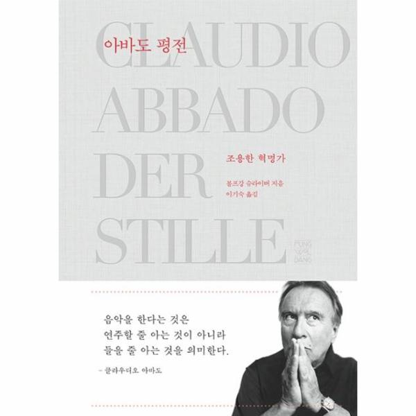 『클라우디오 아바도 ? 조용한 혁명가』의 저자인 저널리스트 볼프강 슈라이버는 클라우디오 아바도를 둘러싼 세간의 평가를 뒤로하고, 수십 년간 음악계에서 자신이 직접 보고 들으며 경험한 이야기를 토대로 인간 아바도, 지휘자 아바도를 입체적으로 그려낸다. 아바도의 육성은 물론이거니와 그와 함께한 음악가들의 증언을 적재적소에 활용하는 서술 방식은 아바도의 삶과 음악을 더 깊이 이해하게 한다. 클라우디오 아바도라는 인물을 다시 쓰기 위해 저자는 그와의 개인적인 친분까지 반영하기를 주저하지 않는다. 연대기 형식을 취한 이 책은 밀라노에서 보낸 어린 시절과 빈에서의 유학 생활을 거쳐 뉴욕과 런던, 시카고, 베를린 등을 오고 갔던 아바도의 지휘 여정을 담담한 필치로 생생하게 재현해낸다. 그 덕분에 독자는 음악을 사랑한 소년이 어떻게 “우리 시대의 가장 품위 있고 영향력 있는 지휘자”(요아힘 카이저가 되었는지를 재구성할 수 있을 것이다.
