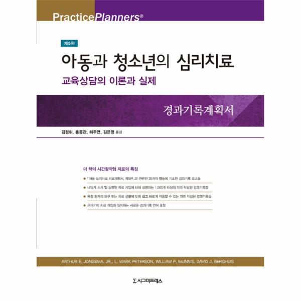 이 책은 미리 작성된 상담 회기 내용과 『아동 심리치료 치료계획서, 제5판』 (2015. 원저 2014에 수록된 각 행동문제에 대해 환자가 나타내는 증상을 담고 있다. 이렇게 미리 작성된 경과기록은 특정 환자의 요구 또는 치료 상황에 맞춰 쉽고 빠르게 적응할 수 있으며 다음과 같은 특징이 있다.