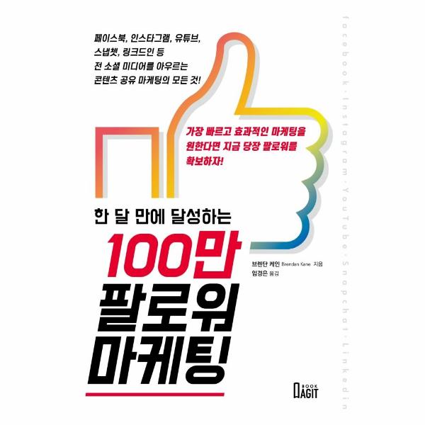 저자가 100만 팔로워를 모은 곳은 페이스북 플랫폼이다. 페이스북은 공유 개념을 바탕으로 하기 때문에 100만 명의 팬을 확보하기에 가장 적합하고 수월하다. 하지만 각 소셜 미디어마다 장단점이 있으며 그 특징들을 잘만 활용하면 자신의 콘텐츠를 널리 알릴 기회가 된다. 이 책에서는 페이스북과 인스타그램뿐만 아니라 동영상 공유에 적합한 유튜브와 특유의 높은 친밀성이 특징인 스냅쳇, 비즈니스 성장에 도움을 주는 특정 사람들을 타겟팅하기 좋은 링크드인까지 세계적으로 많이 사용하는 소셜 미디어를 중심으로 각 특성에 따른 마케팅 방법을 자세하게 알려준다.