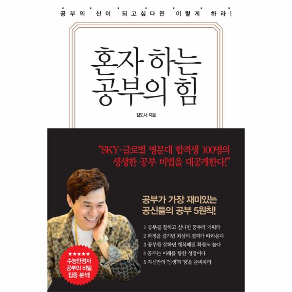 『혼자 하는 공부의 힘』의 저자는 공부를 ‘꿈을 실현하기 위한 하나의 과정’이라고 말한다. 지루하고, 힘들고, 외로운 작업이지만 필요한 작업이기도 하다. 전교 1등, 수능 만점자, 명문대학 합격자들의 인터뷰를 분석해보면 그들이 하나같이 강조하는 것이 있다. 바로 ‘꿈’이다. 언뜻 꿈과 공부는 관련이 없어 보인다. 오히려 반대말같기도 하다. 그러나 꿈과 공부는 분리할 수 없는 관계다. 꿈은 공부에 동기부여를 해주고, 공부는 꿈을 실현시켜주는 지렛대가 된다. 이 책은 ‘왜 하는지도 모르는 공부가 하기 싫은, 이유는 몰라도 꾸역꾸역 힘들게 공부하고 있는’ 청소년들에게 좋은 멘토가 된다.