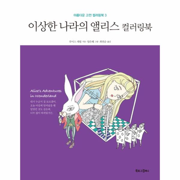 이 획기적인 시리즈의 화룡점정으로 《이상한 나라의 앨리스 컬러링북》이 출간되었다. 독자들은 지금까지 한 번도 보지 못한 앨리스를 통해 신선한 재미를 느낄 것이다. 이 책 속의 앨리스는 독자들이 흔히 생각하는 앨리스와 한참 거리가 멀다. 멜빵 치마와 레인 부츠를 신고 원더랜드를 헤매며 뫼비우스의 띠에서 코커스 경주를 하고, 거대 홍학 위에 앉아 공작 부인과 이야기를 나눈다. 킥보드를 탄 하얀 토끼와 오토바이를 탄 물고기 하인의 모습을 그 누가 상상이나 했겠는가? 여기에 어떤 컬러를 덧입히느냐에 따라 앨리스는 더욱 새롭고 특별해질 것이다. 이제는 내 상상력으로 앨리스의 원더랜드를 완성하자!