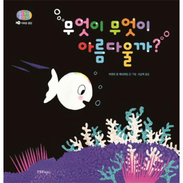 《무엇이 무엇이 아름다울까?》는 바로 여기에 초점을 맞춰 세상 모든 사물은 저마다 소중하며 또 아름답다는 사실을 일깨워 줍니다. 하양이 친구들은 가까운 주변에서 아름다움을 찾습니다. 친구들이 꼽은 대상에는 진주 같은 보석도 있지만, 바닷속에서 흔히 볼 수 있는 물풀도, 볼품없이 말려 올라간 해마의 꼬리도 있습니다. 이 책에서 한 가지 더 주목할 것은 각자가 꼽은 아름다움과 마주한 하양이의 태도입니다. 하양이는 각기 다른 사물을 아름답다고 하는 친구들 각자에게 공감합니다. 문어를 닮은 말미잘, 달팽이의 소중한 먹이이자 안식처인 물풀, 해마가 자랑스러워하는 꼬리가 예쁘고, 사랑스럽고 소중하다고 말입니다. 하양이는 함께 나누고 공감할 때 한층 더 배가되는 우정의 아름다움을 보여 줍니다.