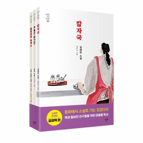 『칼자국』은 시대와 함께 호흡하는 작품들로 많은 독자에게 사랑받아 온 김애란 작가의 자전적 소설을 청소년의 눈높이에 맞추어 따뜻한 그림과 더불어 소개한다. 성인이 된 딸이 어머니의 장례를 치르며 지난 추억을 돌아보는 과정이 가슴 뭉클하게 펼쳐진다. 『하늘은 맑건만』은 한국 소년소설의 개척자로 평가받는 현덕의 작품을 현대적인 감각으로 전한다. 양심과 우정, 어려운 가정 형편처럼 예나 지금이나 변함없는 청소년들의 고민이 실감 나게 그려져 흥미롭게 읽힌다. 스콧 니컬슨의 『뱀파이어 유격수』는 뱀파이어와 야구라는 기발한 소재에 소수자를 향한 온기 어린 시선을 녹여 낸 작품이다. 뱀파이어 제리와 그를 향한 편견과 차별을 그리면서 우리 사회에서 ‘다름’이 어떻게 받아들여지고 있는지 생각해 보도록 이끈다. ‘소설의 첫 만남: 공감력 편’은 가족과 친구, 나아가 사회적 약자에 대한 이야기까지 폭넓게 펼쳐 보이며 깊은 공감을 불러일으킨다.