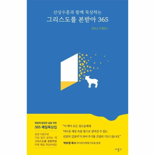 「그리스도를 본받아 365」는 평신도들이 읽기에는 다소 부담되는 본서의 분량을 하루하루 묵상할 수 있도록 정리해 준 참 고마운 책입니다. 더욱이 우리 주님의 산상수훈이 함께 실려 그 은혜의 무게를 더해 주고 있습니다.
