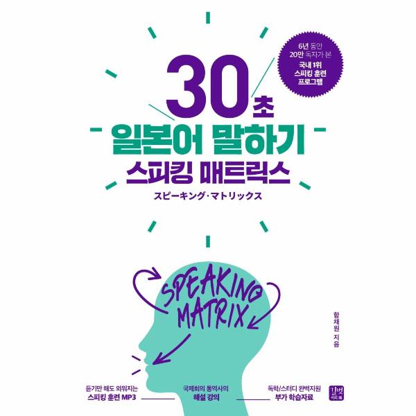 20만 독자가 검증한 국내 1위 스피킹 훈련 프로그램, ‘스피킹 매트릭스’를 적용한 일본어 말하기 훈련서이다. 스피킹 매트릭스만의 체계적이고 과학적인 말하기 훈련을 거치고 나면 누구나 빠르고 정확하게 문장을 말할 수 있다. 이 책은 일본어 뼈대를 만들기 위한 기본 규칙과 상황별 표현을 익히는 INPUT(40일과 이를 응용해 실제로 말하는 연습을 하는 OUTPUT(15일, 총 55일 학습으로 구성되어 있다. 빈틈없이 짜여진 2단계 훈련 프로그램을 끝내면 당신도 30초 이상 일본어로 말할 수 있게 된다. 특별 서비스로 듣고 따라 하기만 해도 문장이 자동으로 외워지는 ‘스피킹 훈련용 mp3파일’을 무료로 제공한다.