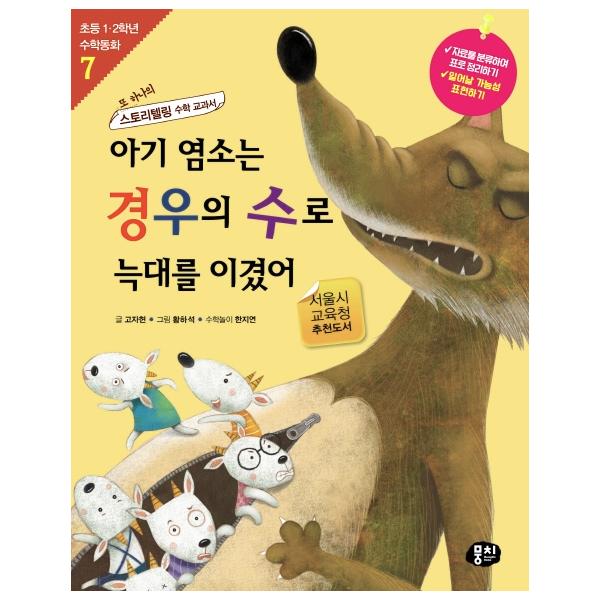 『아기 염소는 경우의 수로 늑대를 이겼어』는 <초등 1·2학년 수학동화 시리즈>의 일곱 번째 권으로 ‘짝을 정하거나 한 줄로 서는 방법의 수와 같은 수로 나눌 수 있는 경우의 수’에 관련된 학습 내용을 동화 이야기에 담았습니다. 이 동화에는 우리가 익히 알고 있는 명작동화 『신데렐라』, 『미운 오리새끼』, 『늑대와 일곱 마리 아기 염소』의 주인공들이 나옵니다.