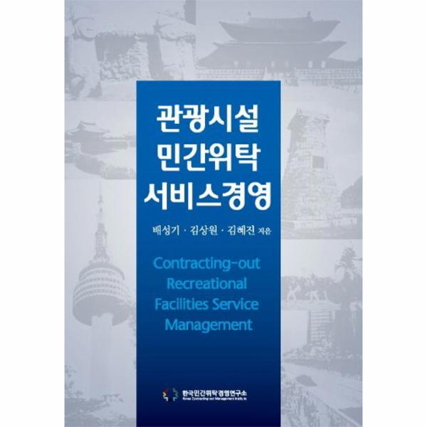 「KCOMI 통계 2015 민간위탁 운영현황분석Ⅰ- 지방자치단체」에 따르면 2013년도 전국 지자체 일발회계 세출예산서 민간위탁금(307-05 중 문화 및 관광이 6.89%로 사회복지(48.78%, 환경보호(28.21%에 세 번째로 높게 나타났습니다. 하지만 이처럼 관광시설의 민간위탁은 공공서비스 분야 중 높은 비율을 차지하고 있는데 반해, 사회복지 및 환경보호 분야에 비하여 관련 서적 및 연구, 업무 매뉴얼이 미미한 실정입니다. 「관광시설 민간위탁 서비스경영」은 이러한 상황 속에서 국내에서는 처음으로 해당 분야 전반에 대하여 포괄적으로 다루어 실무에 관한 다양한 정보를 제공하고 있습니다.