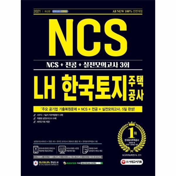 한국토지주택공사 필기시험 합격을 위해 (주시대고시기획에서는 2021년 채용을 대비하여 한국토지주택공사 맞춤형 문제로 구성한 『2021 최신판 All-New LH 한국토지주택공사 직무능력검사 NCS+전공+실전모의고사 3회』를 출간하였다. 상세한 해설로 혼자서도 학습이 가능하도록 하였으며, NCS 통합 및 한국토지주택공사 온라인 모의고사를 무료로 응시할 수 있는 쿠폰을 발급하여 한국토지주택공사 NCS 문제 유형에 대한 연습과 함께 자신의 실력을 최종 점검할 수 있도록 하였다