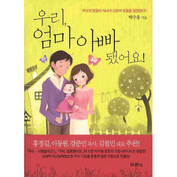 『우리... 사랑할까요?』『우리, 결혼했어요!』에 이은 『우리, 엄마아빠 됐어요!』는 가정사역자인 박수웅 장로의 역작으로 오랜 시간 가정과 청소년 상담 사역을 통해 접해온 다양한 사례들을 기초로 자녀를 양육하며 맞닿게 되는 여러 가지 상황들에 대해서 알기 쉽게 전하고 있다.